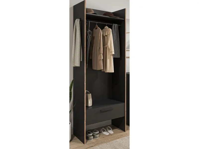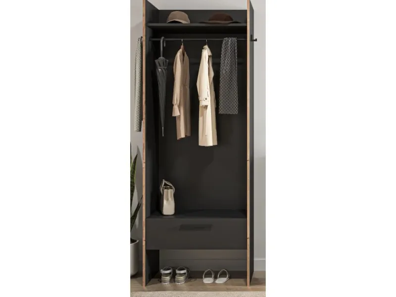 Kompaktgarderobe „Salud“ in Basalt Grau mit Nox Eiche Akzenten