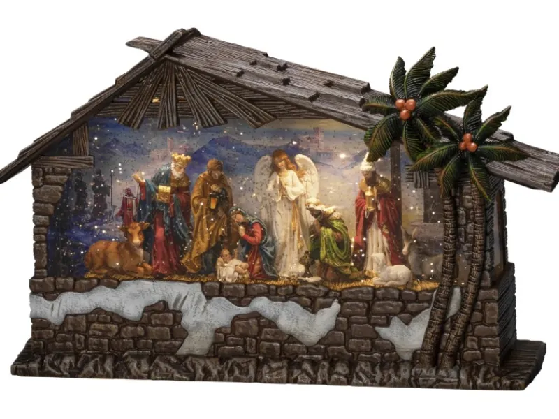 Let it Snow! Diese hochwertige, wassergefüllte Schneelaterne in Form einer Krippe verzaubert mit nostalgischem Schneeflockentanz. Nahezu schwerelos wirbelt die weißglitzernde Pracht um die romantische Weihnachtsszenerie und reflektiert das warmweiße Licht der Diode. Der Anblick der Weihnachtsfiguren macht das Herz weit und lässt uns Weihnachten wieder mit Kinderaugen sehen. Ein sehr hochwertiges und geschmackvoll gestaltetes Nostalgieobjekt, das einen ganz besonderen Platz in Ihrem Interieur verdient. Durch die Stromversorgung mit 3 C-Batterien müssen Sie bei der Platzwahl keine Kompromisse eingehen. Auch den 5h-Timer werden Sie schnell zu schätzen wissen, er sorgt dafür, dass das Licht abends automatisch nach 5 Stunden erlischt, um es am nächsten Abend wieder pünktlich für Sie aufleuchten zu lassen. Ein hochwertiges und langlebiges Markenprodukt, das Ihnen und Ihren Lieben viele Jahre Freude schenken wird. Die Firma Konstsmide ist seit 1942 auf die Herstellung hochwertiger Lichtdekorationen für den Innen- und Außenbereich spezialisiert und seit 1999 maßgeblicher Impulsgeber für innovative, langlebige und sichere LED-Lösungen.