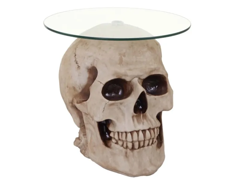 Sie suchen nach etwas Besonderem und Auffälligem für Ihr Zuhause? Dann sind Sie bei diesem ausgefallenen Beistelltisch genau richtig. Der Totenkopf, der als Fuß dient, sieht nicht nur klasse aus, er verhilft dem Tisch auch zu einem sehr stabilen Stand. Aufgrund seines auffälligen und naturgetreuen Designs ist der Tisch ein kleiner Eye-Catcher und wird sich bestimmt super in den Rest Ihrer Wohnung integrieren.