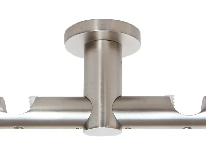 Der Wandhalter besticht durch ein formschönes Design dank versteckter Verschraubung. Mit dieser Halterung können Sie mühelos und sicher Ihre Gardinenstangen an der Wand aufhängen und den Raum individuell nach Ihrem Geschmack gestalten. Zur Anbringung der Vorhangstangen benötigen Sie zwei Träger. Der Wandabstand beträgt 5 cm. Der in Edelstahl gehaltene Doppelträger lässt sich optimal mit gleichfarbigen Garnituren kombinieren.