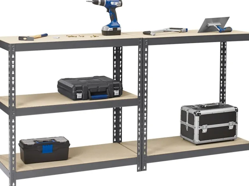 Das Schwerlastregal aus Metall ist in unterschiedlichen Räumlichkeiten einsetzbar. Es kann als Lagerregal beispielsweise in die Vorratskammer, Werkstatt oder Garage gestellt werden, ist jedoch auch nützlich in der Küche oder dem Keller. Zusätzlich kann das Metallregal auch als Werktisch verwendet werden.