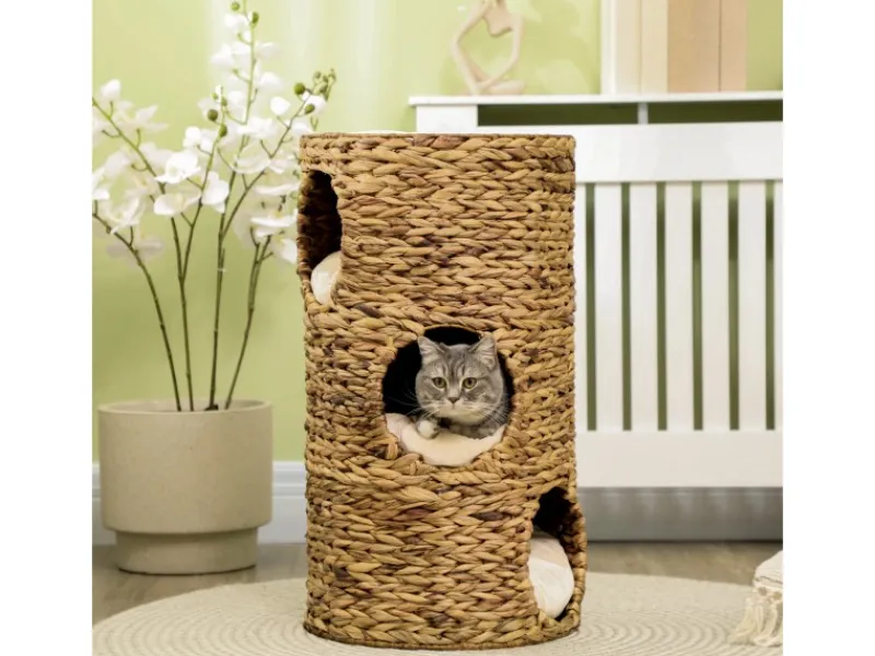 Verwöhnen Sie Ihre Katze mit der PawHut Katzen Kratztonne, dem neuen Lieblingsort Iher Fellnasen! Dieser gemütliche Kratzturm bietet mit drei kuscheligen Katzenhöhlen ideale Rückzugsorte zum Entspannen und Verstecken. Die gut gepolsterte Aussichtsplattform oben ist der perfekte Beobachtungsposten für neugierige Katzenaugen. Dank der Naturmaterialien fügt sich die Katzentonne nahtlos in jede Raumgestaltung ein und bietet sowohl tagsüber Spielvergnügen als auch nachts einen sicheren Schlafplatz.