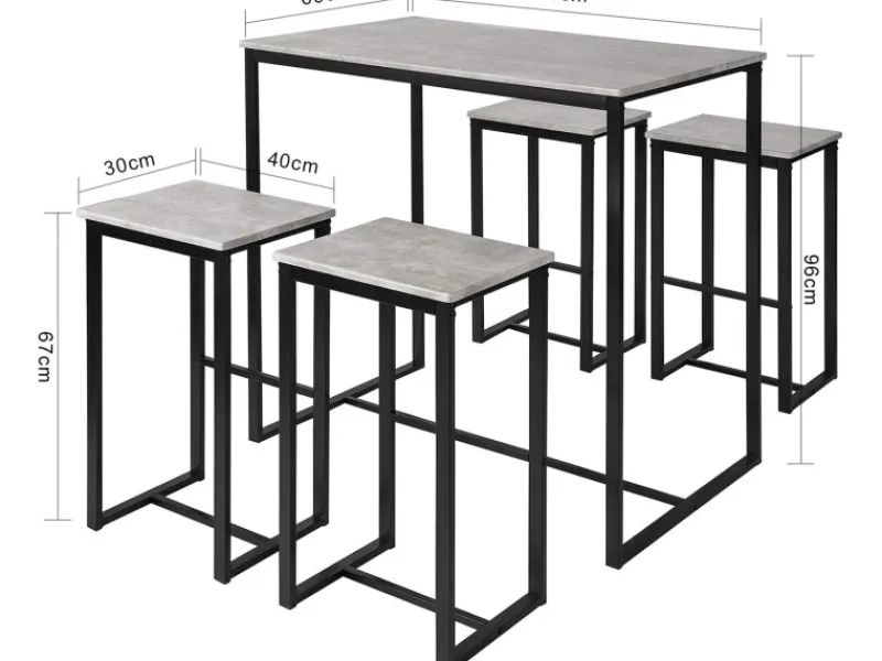 Bartisch und Barhocker aus schwarz pulverbeschichtetem Stahlrahmen mit MDF(E1)-Platten, perfekt für Esszimmer, Wohnzimmer, Küche oder kleine Wohnungen.