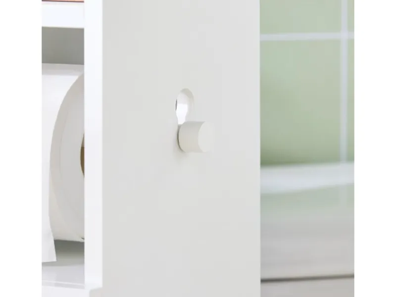 Die oberen Fächer bieten Platz für Toilettenpapier oder kleine Gegenstände, wie z. B. Haarbänder.