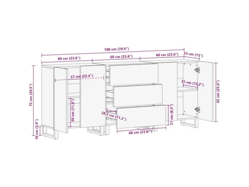 Gesamtabmessungen: 180 x 33 x 75 cm (L x B x H)