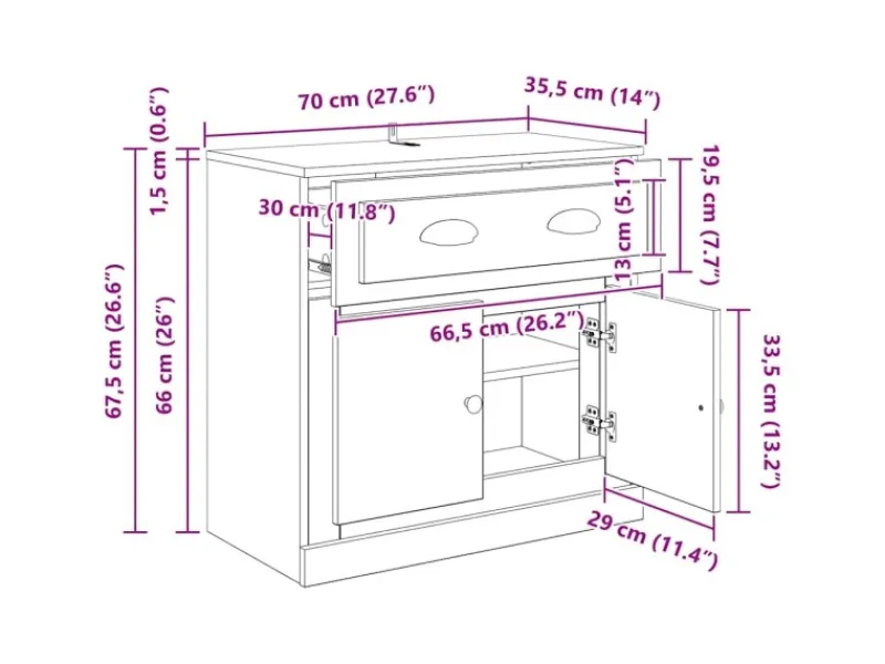 Gesamtabmessungen: 70 x 35,5 x 67,5 cm (L x B x H)
