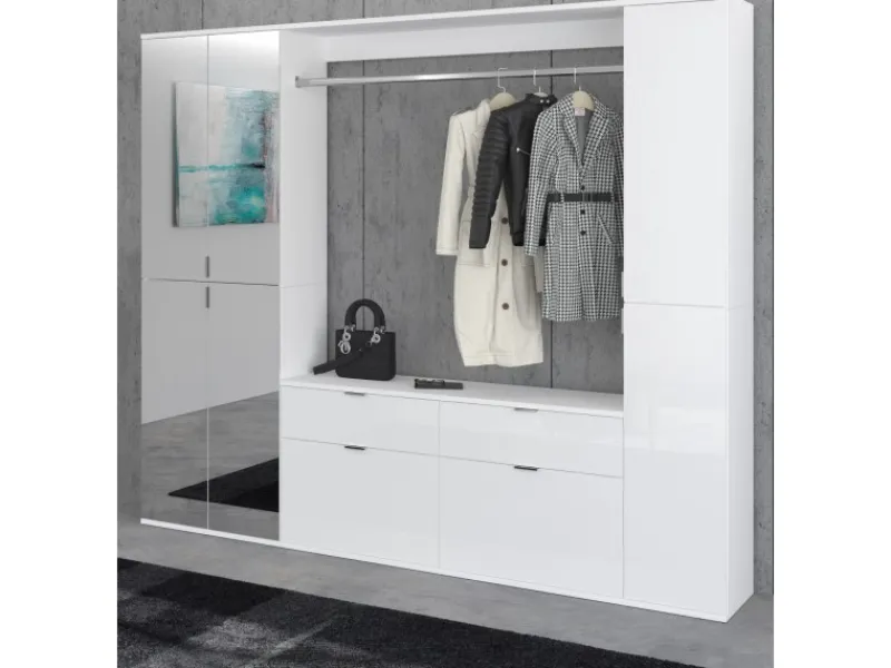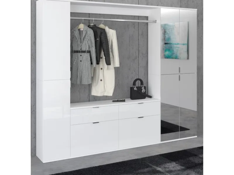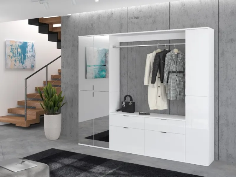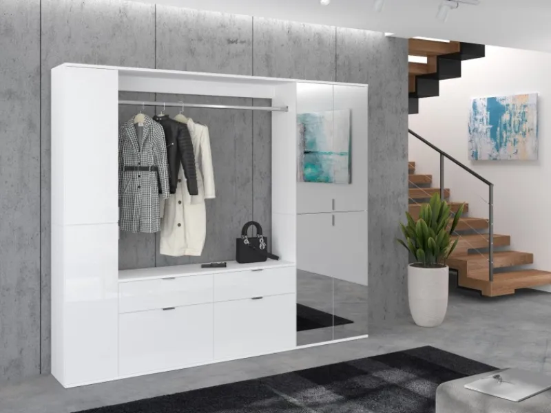 Großzügiger Garderobenschrank in Weiß Hochglanz mit modernem Design