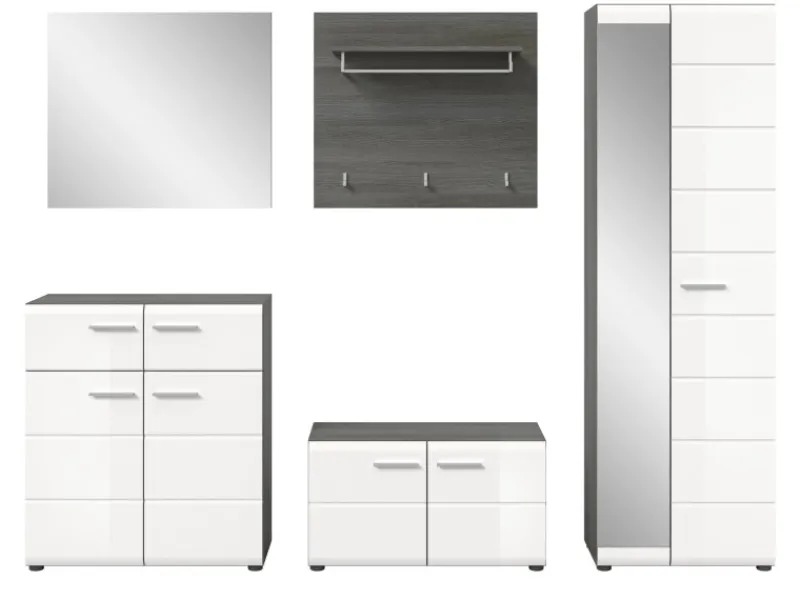 Garderoben-Set Rumba in weiß Hochglanz und Rauchsilber grau, 250 x 192 cm