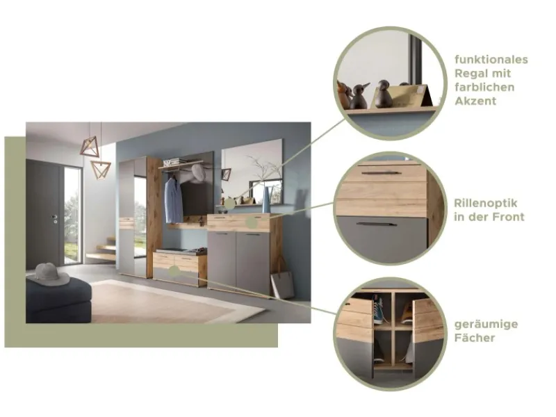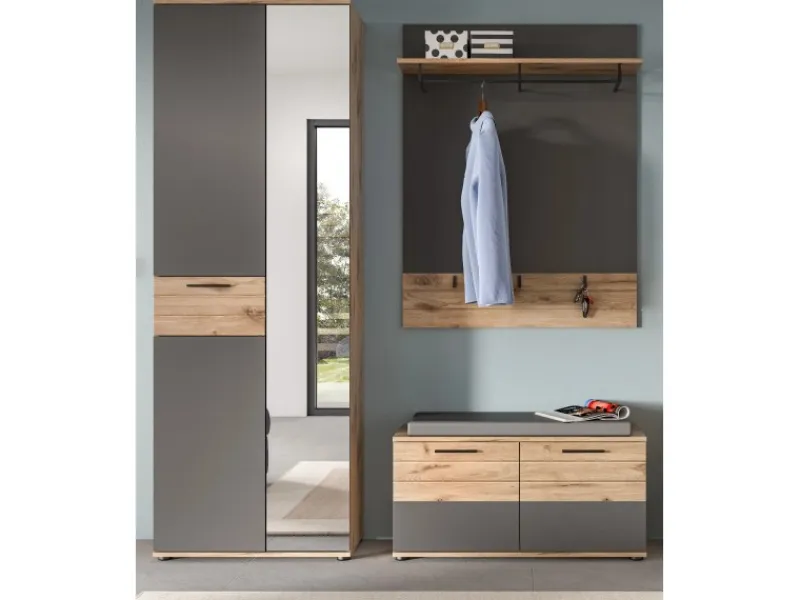 Garderoben-Set Tomaso in Basalt grau mit Eiche, 3-teilig