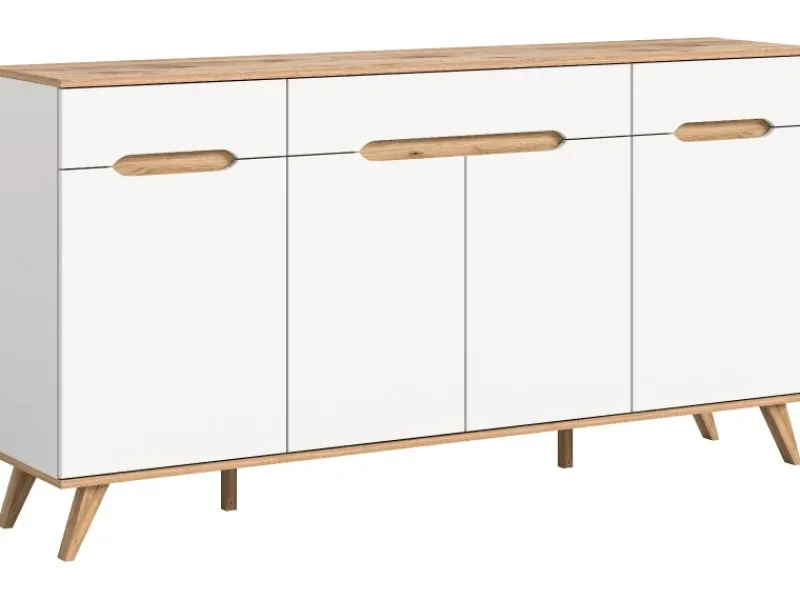 Sideboard Hygge im skandinavischem Design, weiß und Nox Eiche Dekor.