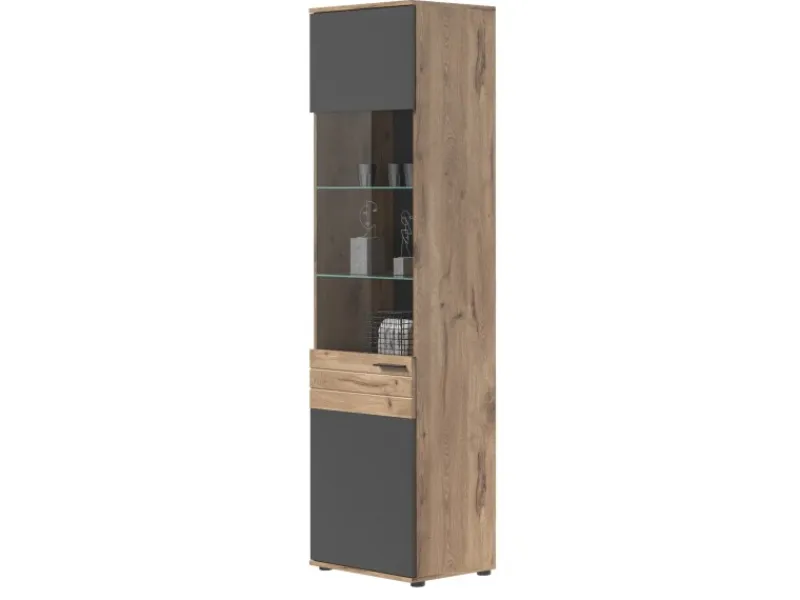 Stauraumvitrine Tomaso in Nox Eiche mit Basalt grau, 57 x 200 cm