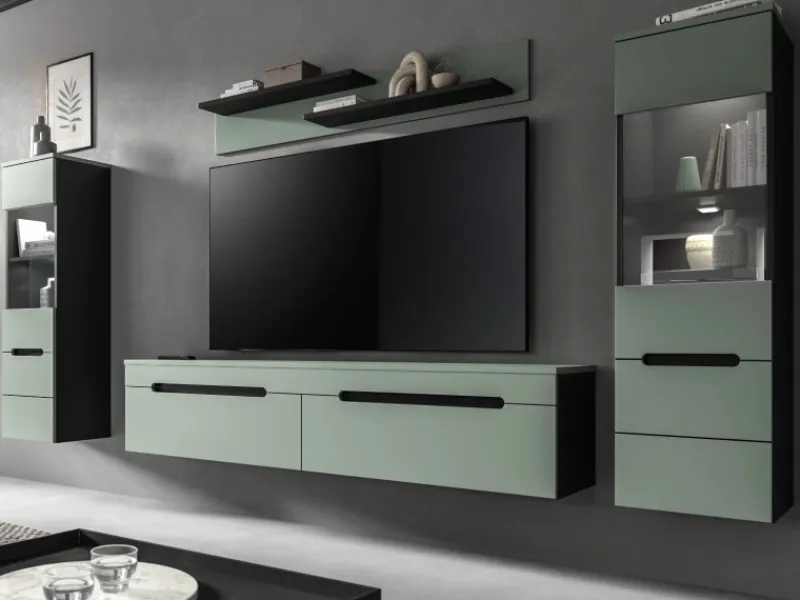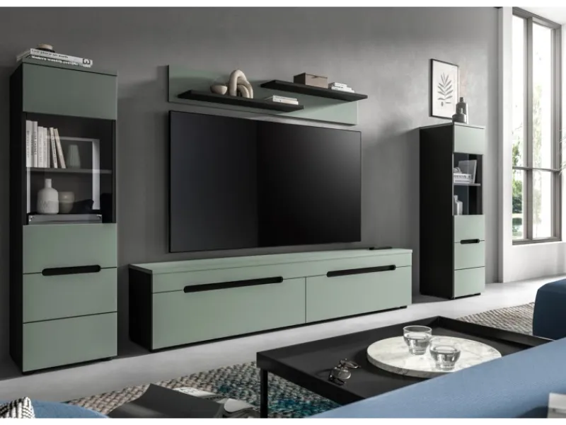 Wohnwand „Cooper“ von Inn.Furn, Salbei Grün & Basalt Grau, 4-teilig