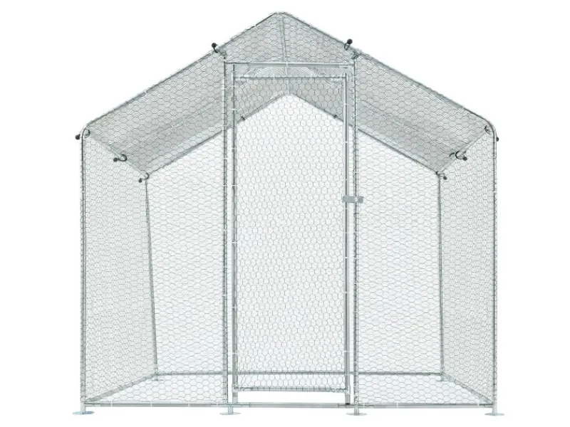 Durch die 55 x 158 cm große Tür gelangen Sie bequem hinein. Die 200 cm hohe Voliere ist komfortabel begehbar. Ein Riegel sorgt für sicheren Verschluss.