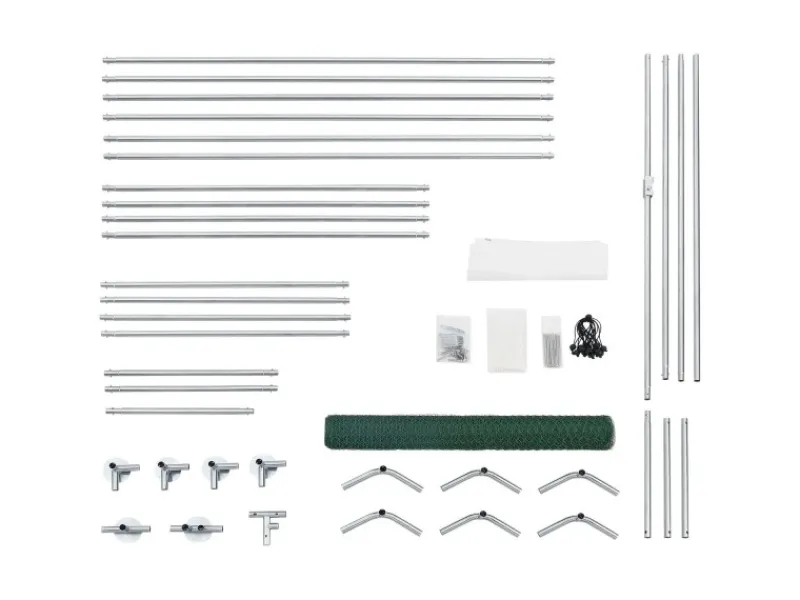 Das stabile Gerüst besteht aus 2,5 cm dicken Rohren mit Steck-Klick-Verbindungen. Das Netz wird mit Kabelbindern befestigt.