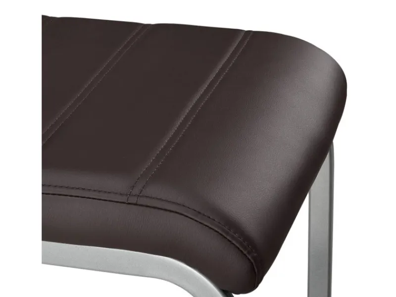 Das silberfarbene Metallgestell ist pulverbeschichtet und bis 120 kg belastbar. Es harmoniert perfekt mit dem braunen Kunstlederbezug und sorgt für sicheren Stand.