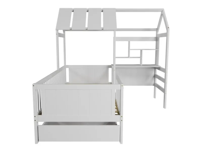 Entdecken Sie das Kinderbett Yari 90×200 cm in elegantem Weiß – die perfekte Lösung für jedes Kinderzimmer! Dieses vielseitige Kinderbett überzeugt mit einem massiven Kieferrahmen, der mit bis zu 150 kg belastbar ist. Der integrierte Schreibtisch und die praktische Schublade bieten zusätzlichen Stauraum und Funktionalität. Dank der einfachen Montage und der vielseitigen Kombinierbarkeit passtdas Jugendbett in jedes Raumkonzept. Schaffen Sie einen gemütlichen Rückzugsort für Ihre Kleinen mit dem Kinderbett Yari! Produktmerkmale Kinderbett: