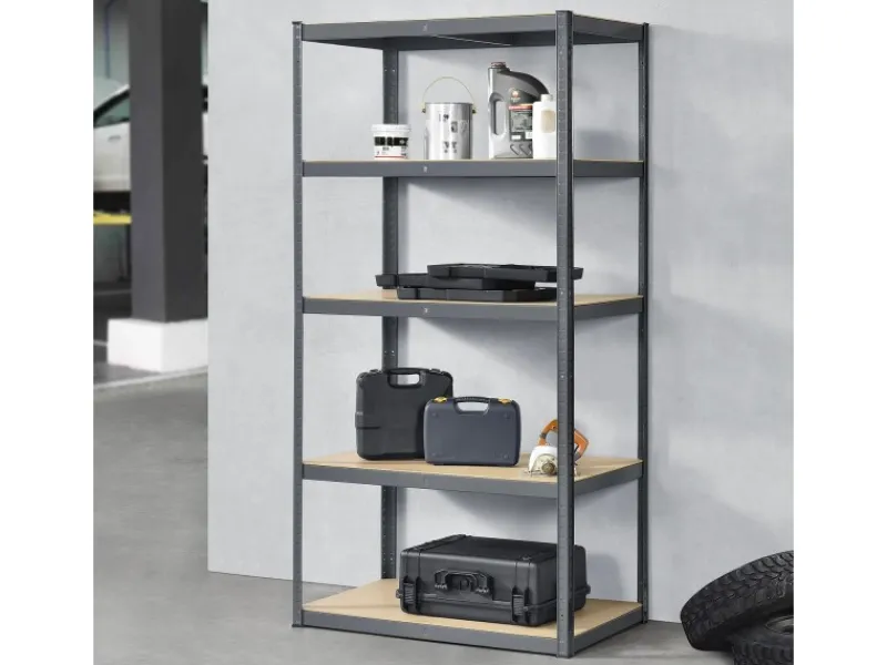 Das Schwerlastregal ist mit insgesamt fünf Einlegeböden ausgestattet. Die stabilen Einlegeböden bieten viel Platz für die Aufbewahrung von Gartenzubehör, Werkzeug, Vorräten, Kisten oder Aktenordnern.