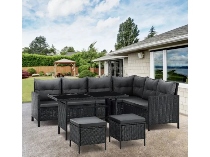 – Ecksofa, 2 Hocker & 1 Tisch – ideal für bis zu 7 Personen