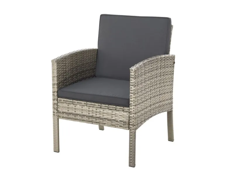 Das stylishe Loungemöbel besteht aus Polyrattan, das nicht nur langlebig ist, sondern auch pflegeleicht und wetterfest. Also ideal für draußen im Garten geeignet.