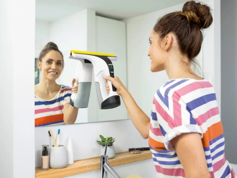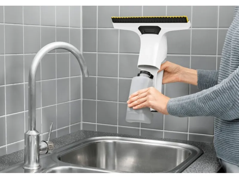 Wie gewohnt garantieren die durchdachte Kombination aus Sprühflasche und Mikrofaser-Wischbezug sowie die leistungsstarke Absaugfunktion des Fenstersaugers eine äußerst effiziente Reinigung und hinterlassen strahlend saubere Fenster – ohne Streifen und Rückstände. Zusätzlich ist die Saugdüse wechselbar. Der ergonomische Kärcher Akku-Fenstersauger WV 6 Plus ermöglicht zudem eine besonders hygienische Fensterreinigung, da kein direkter Kontakt mit dem Schmutzwasser erfolgt.