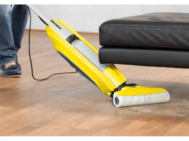 Dank des flexiblen Drehgelenks wird eine gute Unterfahrbarkeit von Möbeln erzielt. Sie können den Wischsauger einfach um Gegenstände navigieren und erreichen auch hervorragende Ergebnisse bis zum Rand. Auch das lange Kabel sorgt für maximalen Komfort, sodass Sie sogar Treppen reinigen können. Die praktische Reinigungs- und Parkstation dient zum einen zur Reinigung der verschmutzten Walzen und zum anderen können Sie den FC 5 platzsparend und sicher verstauen.