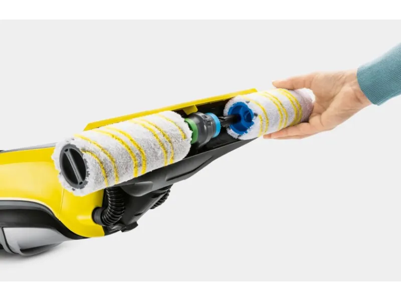 Die Walzen lassen sich dank der farblichen Markierung in Grün und Blau unkompliziert ans Gerät anbringen und ebenso schnell entnehmen. Ein weiterer Vorteil der automatisch rotierenden Mikrofaserwalzen besteht in der Selbstreinigungsfunktion. Das Wasser-Schmutz-Gemisch wird von den Walzen abgesaugt, sodass die Walzen frisch und einsatzbereit bleiben. Durch die rotierenden Walzen lässt sich der Hartbodenreiniger einfach bewegen. Die geringe Restfeuchte lässt Ihre Böden außerdem in weniger als zwei Minuten trocknen. Nach dem Reinigen können Sie die Walzen bei bis zu 60 °C in der Waschmaschine waschen.