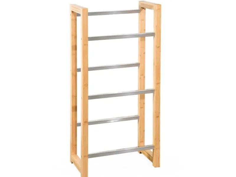 Zusammenfassend bietet der Bambus-Flaschenkastenständer Flash ein vielseitiges und robustes Lagersystem, das sich ideal für die Aufbewahrung von Getränkekästen, Wäscheboxen und vielen anderen Gegenständen eignet. Mit seinem ansprechenden Design, der einfachen Montage und der hohen Tragfähigkeit ist er die perfekte Lösung für alle, die Wert auf Ordnung, Stabilität und Ästhetik legen.