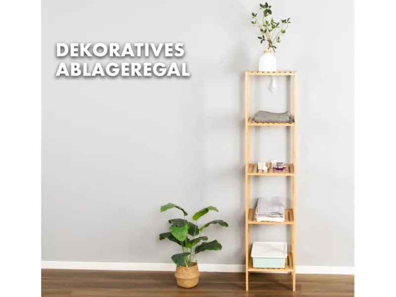 Bringen Sie mit unserem Bambus-Standregal Stil und Funktionalität in Ihr Zuhause – für eine stilvolle, ordentliche und einladende Umgebung!