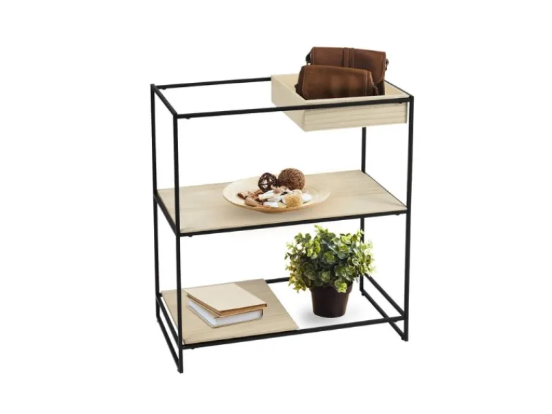 Das Dekoregal Trofast im modernen Industrial-Look besteht, neben dem Metallgerüst, aus besonders leichtem Paulowniaholz und ist daher perfekt für den Wohnbereich geeignet. Die mitgelieferten Regaleinlagen können flexibel arrangiert werden, sodass einer individuellen Gestaltung nichts im Wege steht. Verschiedene Dekorationsartikel, wie Figuren oder Blumen, können in diesem Regal optimal platziert werden und kommen wunderbar zur Geltung. Außerdem sorgt das mitgelieferte Montagematerial für einen schnellen und einfachen Aufbau.