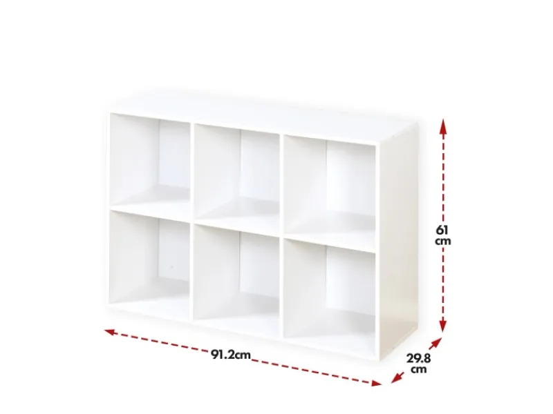 Holzregal Vermont – Stilvolle und vielseitige Aufbewahrungslösung für Ihr ZuhauseDas Holzregal Vermont ist die perfekte Lösung, um Ordnung und Stil in Ihr Zuhause zu bringen. Hergestellt aus robustem MDF in edlem Weiß, überzeugt es durch sein modernes, minimalistisches Design und seine vielseitigen Einsatzmöglichkeiten. Mit einer Größe von 29,8 cm Tiefe x 91,2 cm Breite x 61 cm Höhe fügt sich dieses platzsparende Regal mühelos in jeden Wohn- oder Schlafraum ein.Das Regal verfügt über sechs geräumige Fächer, die Ihnen vielfältige Aufbewahrungsmöglichkeiten bieten. Nutzen Sie es, um Bücher, Dekorationsartikel, Pflanzen oder Aufbewahrungsboxen stilvoll in Szene zu setzen. Ob als Bücherregal, Aufbewahrungsregal oder Dekoelement – die großzügigen Fächer sorgen für eine ordentliche und übersichtliche Organisation Ihrer Gegenstände.Das zeitlose, moderne Design des weißen Bücherregals passt harmonisch in jede Einrichtung. Es verleiht Ihrem Raum eine elegante Note, ohne dabei aufdringlich zu wirken. Dieses Regal ist ein echter Blickfang, der gleichzeitig praktisch ist und Ihnen ermöglicht, Ihre Wohnaccessoires stilvoll zu präsentieren.Dank des hochwertigen Materials ist das Regal besonders stabil und langlebig. Die robuste Konstruktion gewährleistet eine hohe Belastbarkeit, sodass es auch schwere Bücher oder größere Dekorationsartikel sicher tragen kann. Es ist die ideale Wahl, wenn Sie nach einer langlebigen und zuverlässigen Aufbewahrungslösung suchen.Die einfache Montage ermöglicht es Ihnen, das Regal schnell und mühelos aufzubauen. Mit der klaren Anleitung steht es innerhalb weniger Minuten bereit, um Ihren Raum aufzuwerten.Ob im Wohnzimmer oder Schlafzimm er, das Vermont Holzregal fügt sich nahtlos in jeden Raum ein und bietet eine stilvolle und funktionale Lösung für Ihre Aufbewahrungsbedürfnisse. Holen Sie sich dieses vielseitige Regal und genießen Sie eine aufgeräumte, moderne Wohnatmosphäre!Holzregal Vermont – Produkteigenschaften:Material: Hochwertiges MDF in WeißGröße: 29,8 cm Tiefe x 91,2 cm Breite x 61 cm HöheFächer: 6 geräumige Fächer für vielseitige AufbewahrungDesign: Zeitloses, modernes und minimalistisches DesignPlatzsparend: Ideal für Wohnzimmer und SchlafzimmerVielseitig: Kann als Bücherregal, Aufbewahrungsregal oder Dekorationsregal verwendet werdenStabil und langlebig: Robuste Konstruktion mit hoher BelastbarkeitEinfache Montage: Schneller Aufbau dank klarer Montageanleitung