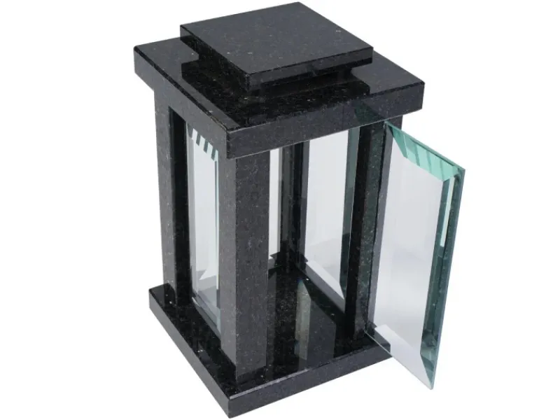 Handgefertigte, polierte Grablampe aus robustem, witterungsbeständigem Granit.