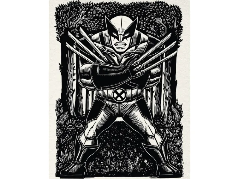 Komar Wandbild Marvel Wolverine Lino-Cut 30 cm x 40 cm Schwarz-Weiß