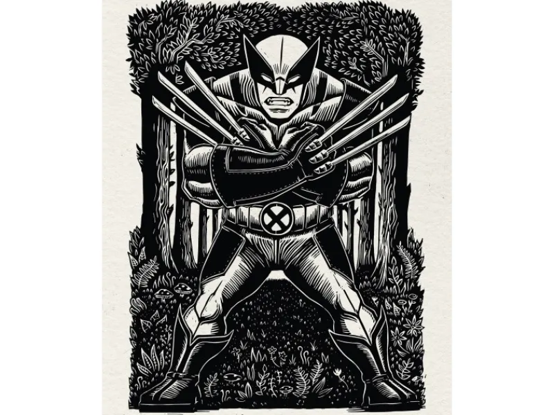 Komar Wandbild Marvel Wolverine Lino-Cut 40 cm x 50 cm Schwarz-Weiß