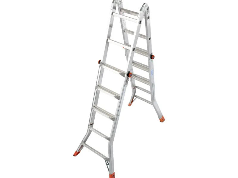 Das Leiter-Innenteil und die Leiter-Außenteile können zu zwei separaten Stehleitern kombiniert werden (für das Innenteil wird die Combi-Traverse benötigt). Diese Leiter ist zudem treppengängig, was sie besonders flexibel für unterschiedliche Einsatzbereiche macht. Die rutschsicheren SafetyCap Fußkappen garantieren einen sicheren Stand auf verschiedenen Oberflächen.