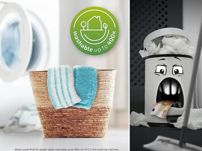 Langlebige Wischbezüge: micro duo bei 60°C bis zu 400x, duster static bei 40°C bis zu 100x in der