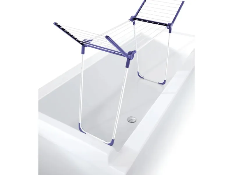 Die 93 cm hohen, seitlich aufklappbaren Flügeln ermöglichen auch das Trocknen von lange Wäschestücken
