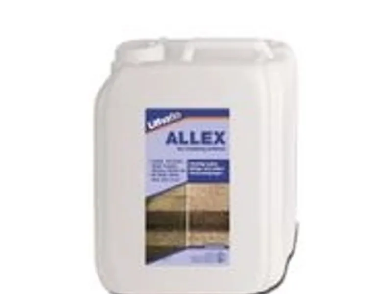Eigenschaften:Entfernt uebliche Schmutzbelaege und von Pflanzen verursachte Verunreinigungen. Fuer Terrassen, Treppen, Wege, Mauern aus Natur- und Betonstein, Klinker, wie auch fuer Putz, Holz u.a. selbstwirkend leicht anzuwenden KonzentratProduktbeschreibung:Ein Spezialprodukt aus dem LITHOFIN-Programm. Universell einsetzbares, wasserverduennbares Konzentrat auf Tensidbasis. Es ist neutral, chlor- und saeurefrei.Produkteigenschaften:Entfernt selbstwirkend alle ueblichen Oberflaechenverschmutzungen, die von Pflanzen und Baeumen verursacht werden sowie allgemeine Verunreinigungen. Auch rutschige, gruene Belaege werden beseitigt. Die Tiefenwirkung sorgt fuer nachhaltig saubere Flaechen.Technische Daten:Dichte: 1,0 g/cm³ pH-Wert: ca. 8 (Konzentrat) Aussehen: klar, hellblau Geruch: parfuemiert Loeslichkeit in Wasser: vollstaendigAnwendungsgebiet:Anwendungsbereich Zum Reinigen aller Aussenflaechen wie Treppen, Wege und Terrassen mit Beton- oder Natursteinplatten, Mauerwerk aus Klinker und Putz, Grabsteine, Daecher, Holzzaeune, Markisen usw. Ideal zur Behandlung gruener und rutschiger Belaege.Gebrauchsanweisung:Lithofin ALLEX wird ca. 1:10 (bei leichtem Befall bis ca.1:20) mit Wasser verduennt und aufgetragen. Auftragsmenge 0,2 ltr/m². Nach einigen Tagen erscheinen die Flaechen wieder hell, sauber und belagfrei. Reste koennen mit Wasser abgespuelt werden bzw. verschwinden beim naechsten Regen. Behandelte Flaechen sollten ca. 4 Stunden vor Regen geschuetzt sein. Zum Auftragen eignet sich eine Giesskanne oder besser ein Spruehgeraet (Baumspritze). Fuer kleinere Flaechen verwendet man vorteilhaft eine Spruehflasche.Wirkstoffe/Inhaltsstoffe;Inhaltsstoffe nach VE(EG) 648/2004 (DetVo):15-30% kationische Tenside, DuftstoffeKennzeichnung nach VO(EG) Nr.1272/2008(CLP):Aetzwirkung (GHS05) · Umwelt (GHS09)SignalwortGefahrGefahrenhinweiseH314 Verursacht schwere Veraetzungen der Haut und schwere Augenschaeden. H400 Sehr giftig fuer Wasserorganismen. H411 Giftig fuer Wasserorganismen, mit langfristiger Wirkung.SicherheitshinweiseP102 Darf nicht in die Haende von Kindern gelangen. P280 Schutzhandschuhe/Schutzkleidung/Augenschutz/Gesichtsschutz tragen. P301+P330+P331 BEI VERSCHLUCKEN: Mund ausspuelen. KEIN Erbrechen herbeifuehren. P305+P351+P338 BEI KONTAKT MIT DEN AUGEN: Einige Minuten lang behutsam mit Wasser ausspuelen. Eventuell vorhandene Kontaktlinsen nach Moeglichkeit entfernen. Weiter spuelen. P405 Unter Verschluss aufbewahren. P501 Inhalt/Behaelter gemaess lokaler und nationaler Vorschriften entsorgen.Biozidprodukte vorsichtig verwenden. Vor Gebrauch stets Etikett und Produktinformation lesen.Registrierungsnummer Biozidprodukte: N-12916Sicherheitsdatenblatt