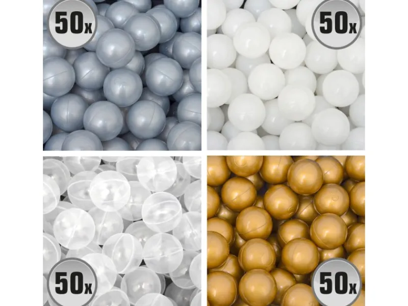 4 Farben Ballset ohne harte Nähte: Gold, Grau, Weiß & Transparent.