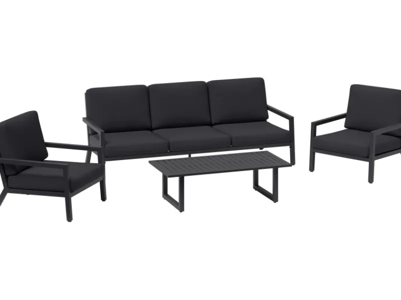 4-teiliges Lounge-Set bestehend aus 2 Sesseln, Sitzbank und Loungetisch