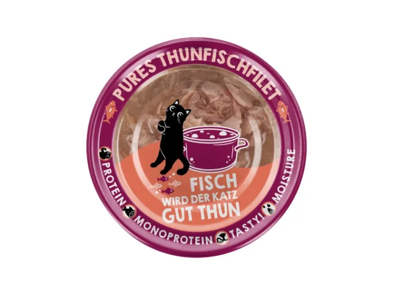Thunfischsud 53,5%, Thunfischfilet 45%, Tapiokastärke 1,5%