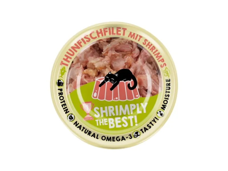 Thunfisch- und Shrimpsud 56,5 %, Thunfischfilet 38 %, Shrimps 4 %, Tapiokastärke 1,5 %