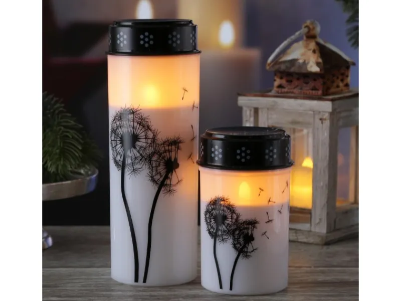 Dieses weiße LED Gedenklichter Set mit dem schwarzen Pusteblume Motiv ist ein würdiger Ersatz für herkömmliche Wachskerzen.
