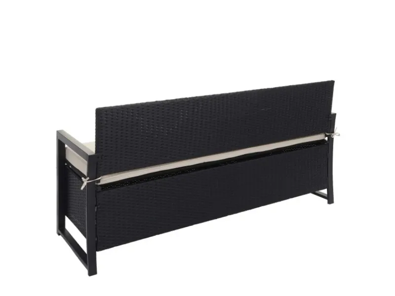 – Dieses 3er Sofa ist schlicht, solide und lässt sich beliebig mit anderen Gartenmöbeln kombinieren. Neben dem hohen Sitzkomfort dank der Armlehnen, lässt sich die Sitzbank durch die Gasdruckfeder mühelos öffnen und verharrt stufenlos in jeder Position.