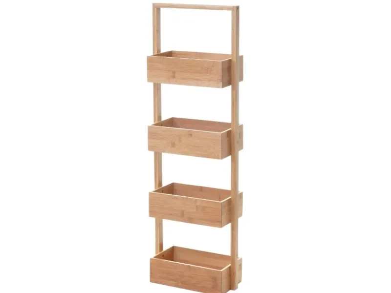 Dieses praktische Regal überzeugt durch viel Stauraum auf kleiner Fläche. Egal ob im Bad, Kinderzimmer, Flur oder Küche, es macht überall eine gute Figur und lässt Ordnung sprichwörtlich zum Kinderspiel werden. Durch die schlichte Schönheit des Bambus-Holzes und die Aufbewahrungskörbe fügt sich das Regal perfekt in jeden Raum ein und setzt trotzdem einen schönen Akzent in Ihr Zuhause. Der Aufbau ist denkbar einfach und so ist Ihr neues Möbelstück in kürzester Zeit einsatzbereit.