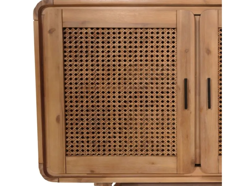Die Kommode M47, eine stilvolle Bereicherung für Ihr Heim, zeichnet sich durch ihr modernes Design mit Rattan an den Türfronten aus und verleiht jedem Zimmer eine elegante Note. Gefertigt aus solidem Massivholz, verspricht dieses Möbelstück sowohl Haltbarkeit als auch Stabilität. Mit vier geräumigen Fächern und drei Türen bietet es viel Stauraum für Ihre Sachen und sorgt für eine geordnete Atmosphäre.