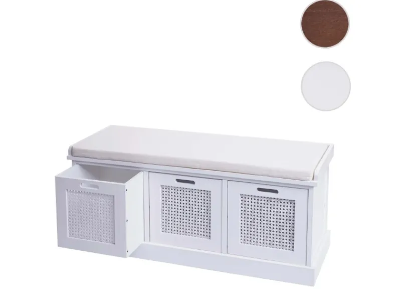 – Diese Sitz-Kommode überzeugt nicht nur durch ihr schlichtes Design. Dank den drei praktischen Aufbewahrungsboxen verfügt sie über reichlich Unterbringungsmöglichkeiten für Ihre alltäglichen Gebrauchsgegenstände wie Taschen, Regenschirme oder Ähnliches.