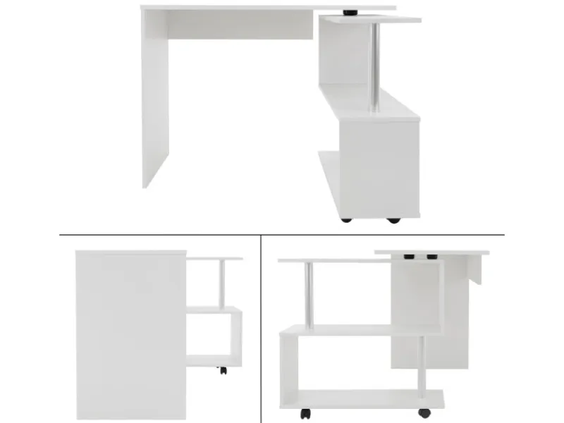Der um 90 Grad drehbare, verstellbare Eckschreibtisch bietet mehr Platz für den Drucker, Stereoanlage, Bücher, Blumen und alles, was Sie zur Hand haben möchten.