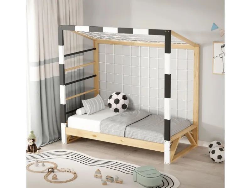 Mit unserem Holzbett Fußballtor treffen Sie eine gute Entscheidung für Ihr Kinderzimmer. Sein optimales Design und stilvolles Aussehen passen perfekt in jede Wohnung.