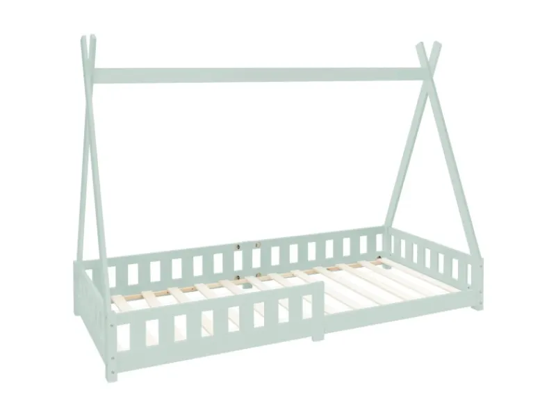 1x Kinderbett Tipi mit Rausfallschutz, inkl. Lattenrost aus Furnierholz