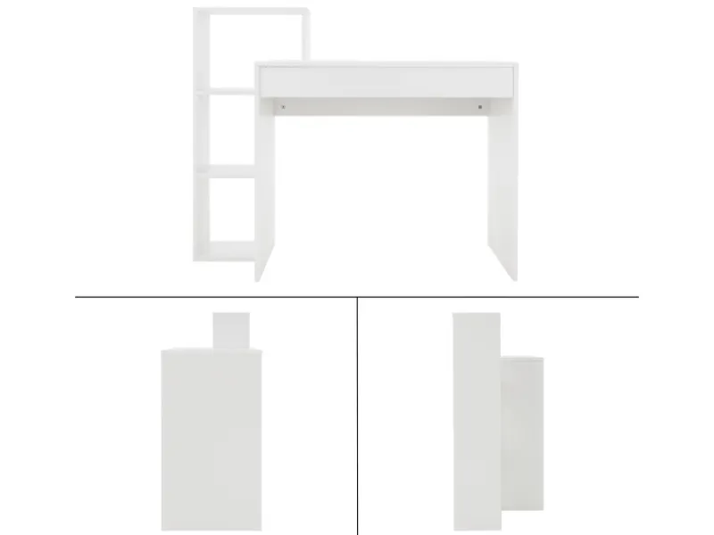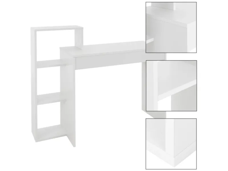 Praktischer Schreibtisch mit integriertem Regal: Dieser Schreibtisch hat nicht nur die Tischplatte als Ablagefläche, sondern ein angebautes Regal dient als zusätzlicher Stauraum. Die Schreibtisch-Regal Kombination ist nicht nur super praktisch, sondern auch ein echter Hingucker. Zusätzlich ist der Tisch äußerst robust bei einer Materialstärke von 15 mm. Hier bekommst du nahezu alles verstaut, was du am Schreibtisch brauchst.